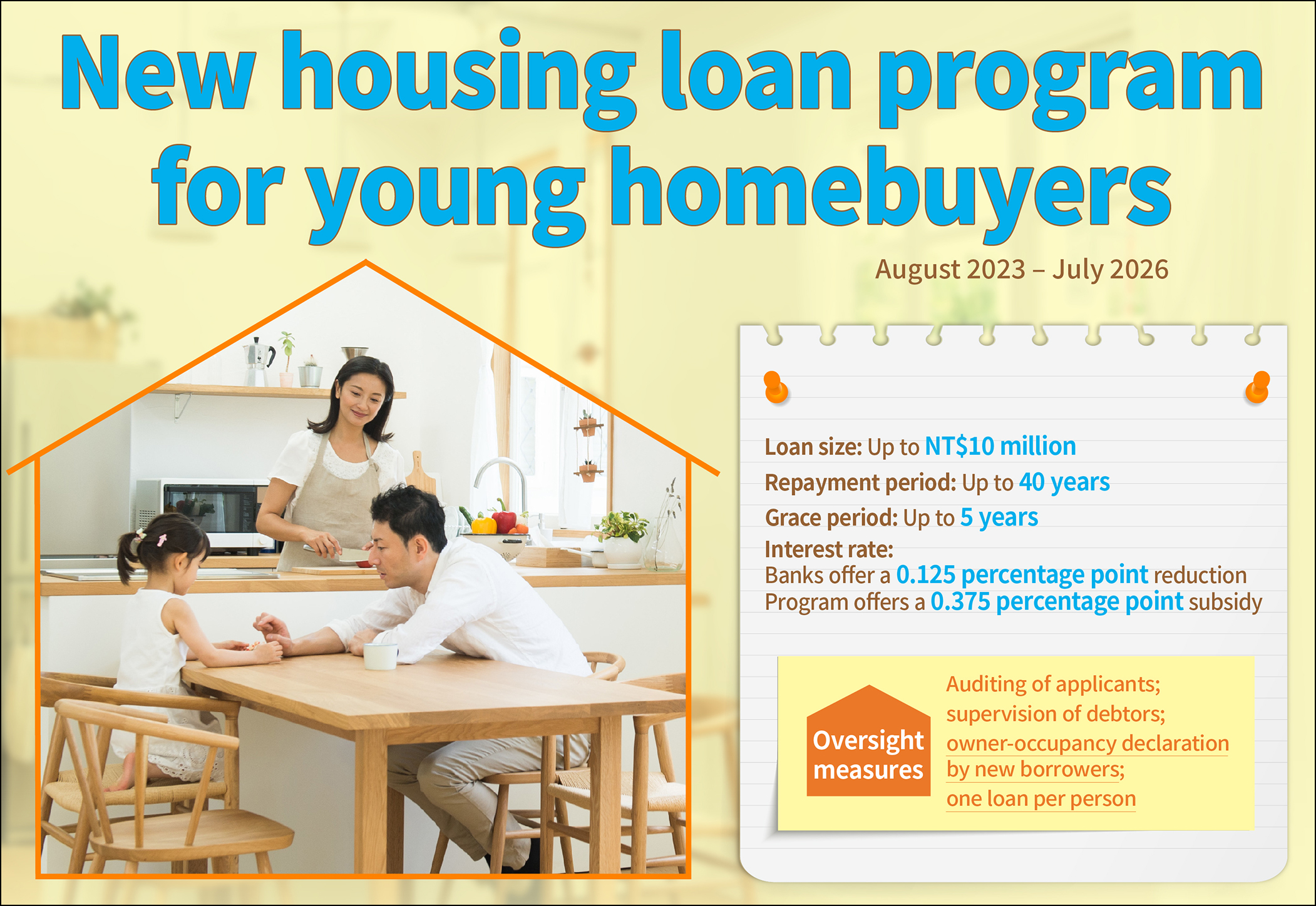 ■ Better terms and conditions: Loan amounts have been increased to a maximum of NT$10 million (US$308,000), repayment periods extended to a maximum of 40 years, and grace periods extended to a maximum of five years. State-owned banks have lowered the loan interest rates by 0.125 percentage points, and the government subsidizes an additional 0.375 percentage points, resulting in a total reduction of 0.5 percentage points in loan interest rates.
