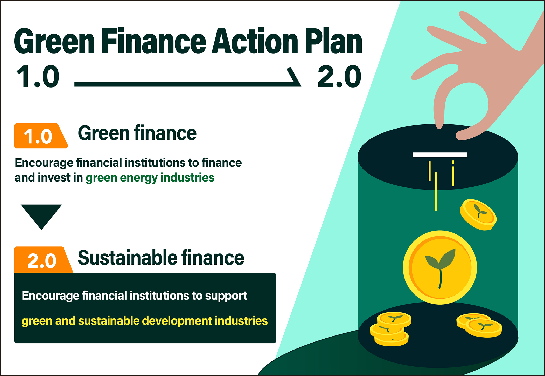In response to the international trend toward green finance, Taiwan's government in 2017 began implementing the Green Finance Action Plan, covering such areas as credit, investment, fundraising in capital markets, training and talent development, data transparency, and the robust growth of green financial products and services. The objective is to transform Taiwan into a green, low-carbon economy boasting green investment along with green consumption and lifestyles.