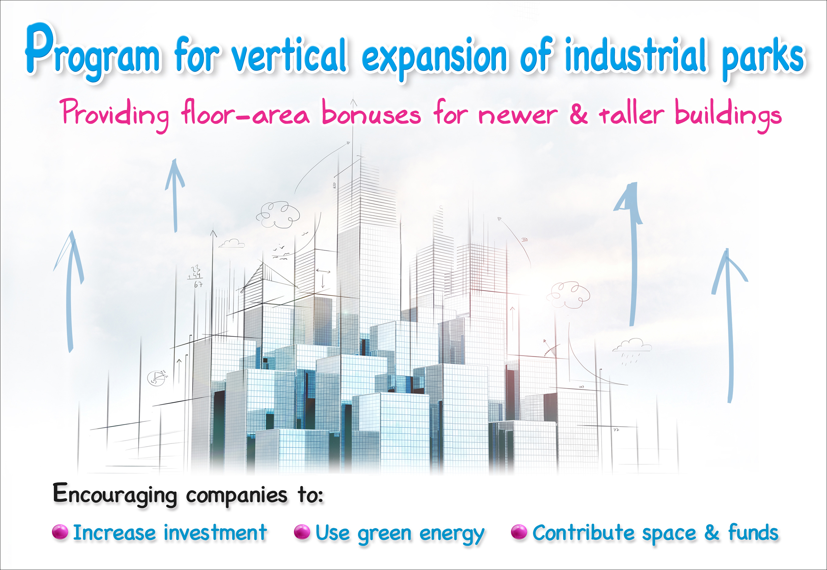 On April 26, 2019, the Executive Yuan approved a plan to revitalize industrial zones through the vertical expansion of buildings and facilities as a means of assisting enterprises looking to invest in Taiwan overcome the complication of securing suitable space. The plan grants floor-area bonuses as incentives for companies to either add higher levels to existing facilities or tear down older structures to rebuild based on higher floor-area ratios (the ratio between a building's usable floor area and the size of the lot on which the structure stands). The objective is to accelerate industrial renewal, increase the height of facilities to improve land-use efficiency, and make available the additional space required for producers to develop and grow. Creating an environment to attract additional corporate investment and encourage better management of energy resources are also important considerations.