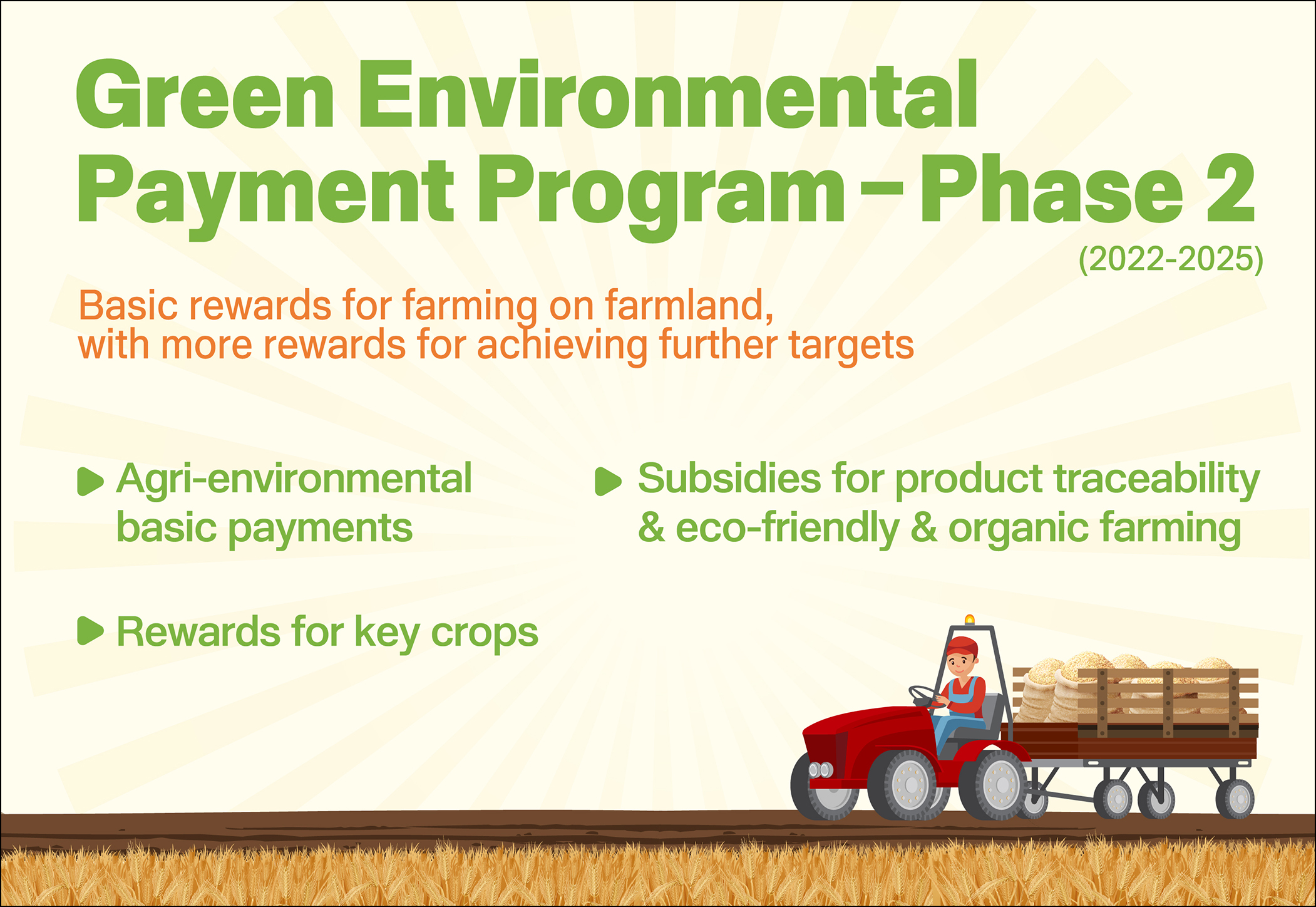■ Agri-environmental basic payments: Provide payments when agricultural crop production is maintained on non-urban land reserved for farming or animal husbandry.