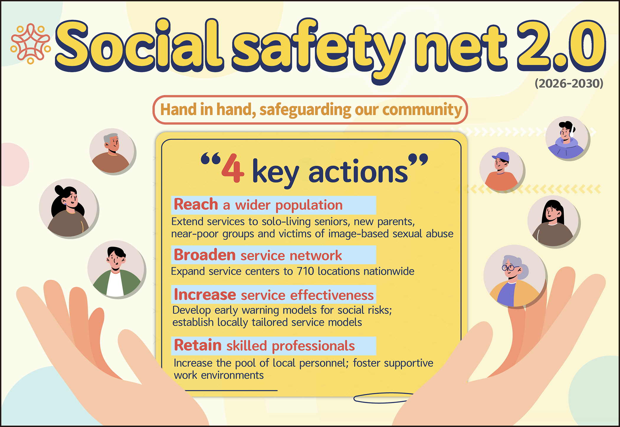 ■ Reaching a wider service population: Expand the service population to include seniors living alone, new parents, near-poor populations and victims of image-based sexual abuse, ensuring timely and appropriate support for all disadvantaged citizens.