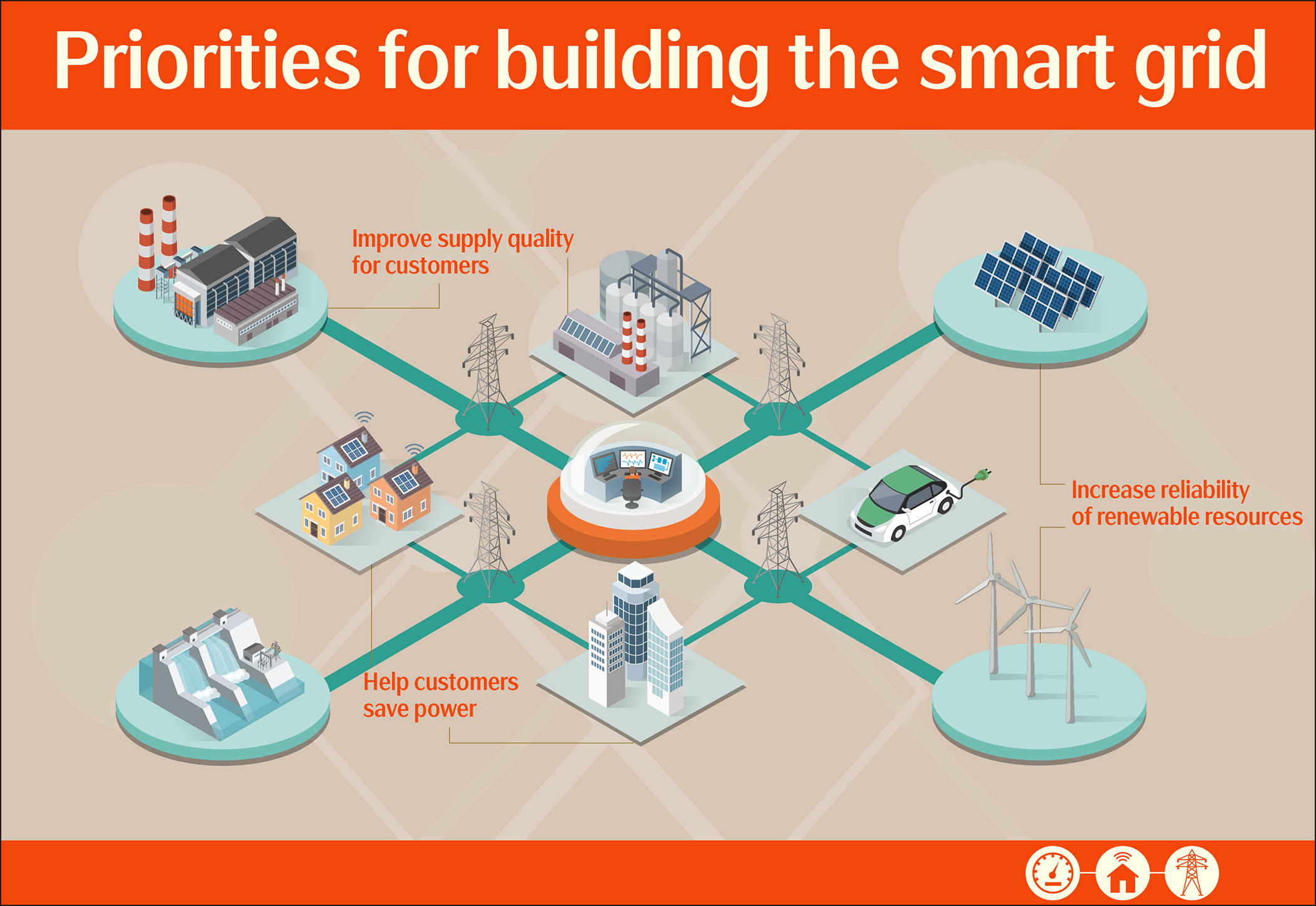 ■ Improve quality of power supply to customers: Reduce power outage recovery time to five minutes in non-faulted areas by expanding usage of automated feeder and line switching, isolating faulted areas quickly, and using geographical data systems and real-time monitoring information. By 2025, power outage recovery time should be down to five minutes or less in 70 percent of cases annually.