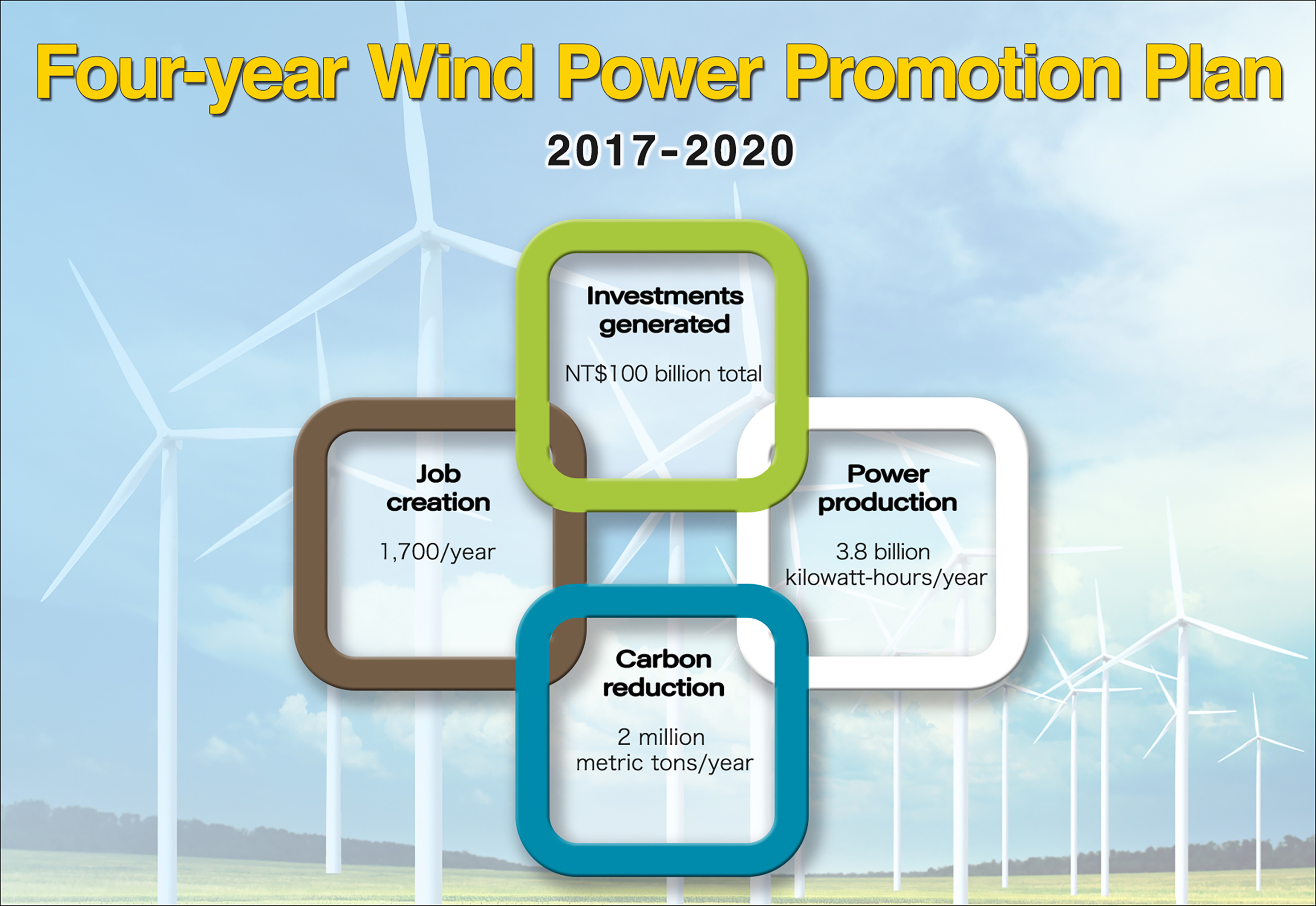 The Four-year Wind Power Promotion Plan (2017-2020) is part of an effort by the Taiwan government to transform and rebuild the nation's energy sector around energy security, the green economy and environmental sustainability, with the overarching goal of phasing out nuclear power and increasing renewable resources to 20 percent of the nation's energy portfolio by 2025.