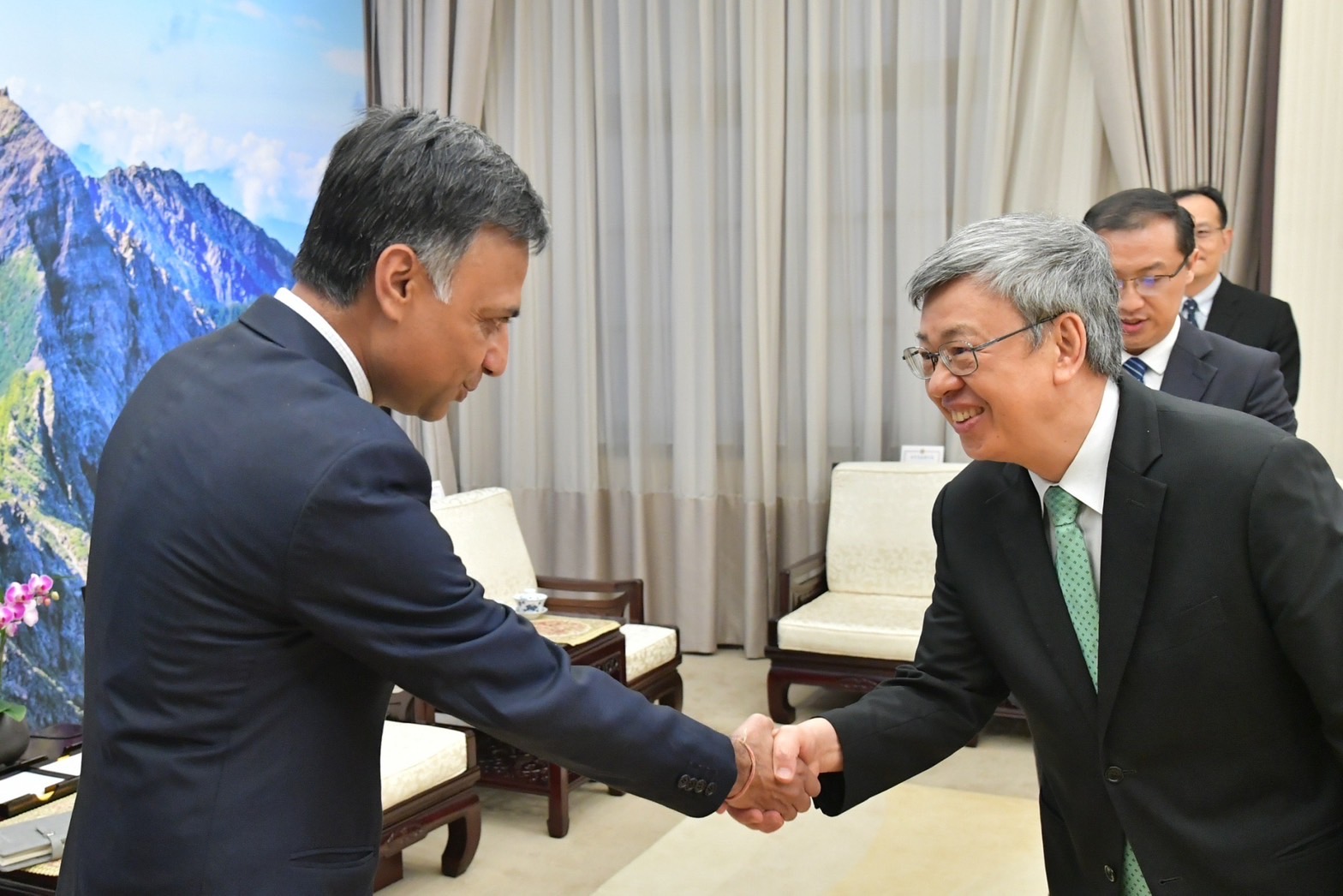 Premier Chen Chien-jen on Tuesday received the new director general of the India Taipei Association, Manharsinh Laxmanbhai Yadav, who took up the position in August. The premier noted that Taiwan and India's economies and trading structures are highly complementary. Both sides have made considerable progress in promoting exchanges in areas such as economy and trade, education, culture and supply chains, with the total value of bilateral trade in 2022 reaching a record high of US$8.4 billion.