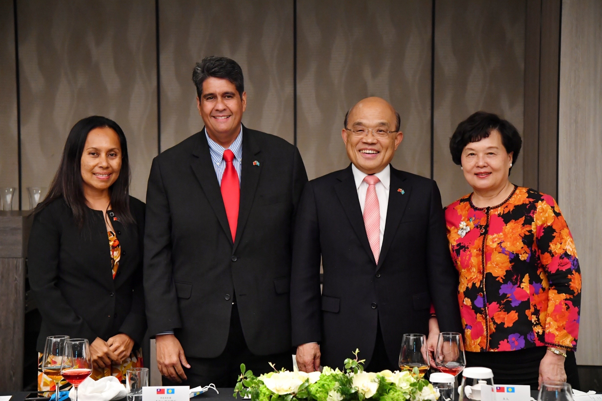 Premier Su Tseng-chang and his wife on Monday night hosted a banquet in honor of President Surangel Whipps Jr. and the first lady of Palau. President Whipps is the first head of state to visit Taiwan since the COVID-19 pandemic began. Symbolizing co-existence, co-prosperity and collaboration for the two nations, the visit by President Whipps and his delegation is the culmination of joint efforts to fight the pandemic, Premier Su said.