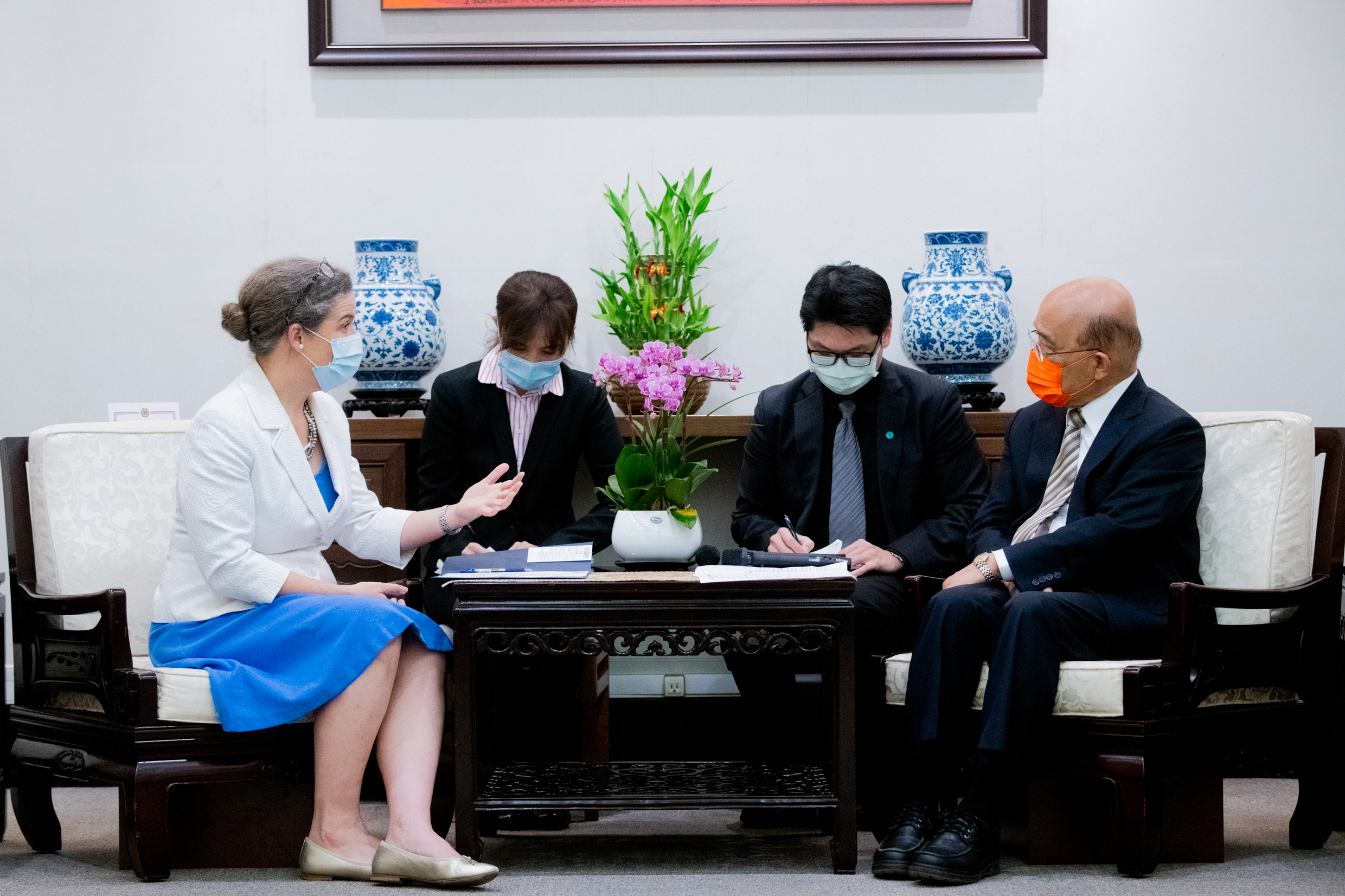 Director Oudkirk thanked Premier Su for his warm welcome and greetings, saying she was delighted and honored to return to Taiwan as director of the AIT and experience today's Taiwan. Compared with the country in the 1990s during her first assignment here, Taiwan has made extraordinary achievements over the past three decades. The director reiterated her commitment to advancing Taiwan-U.S. ties. As the two nations share common values of freedom and democracy, she looks forward to further collaborations in many fields and an even stronger Taiwan-U.S. relationship.