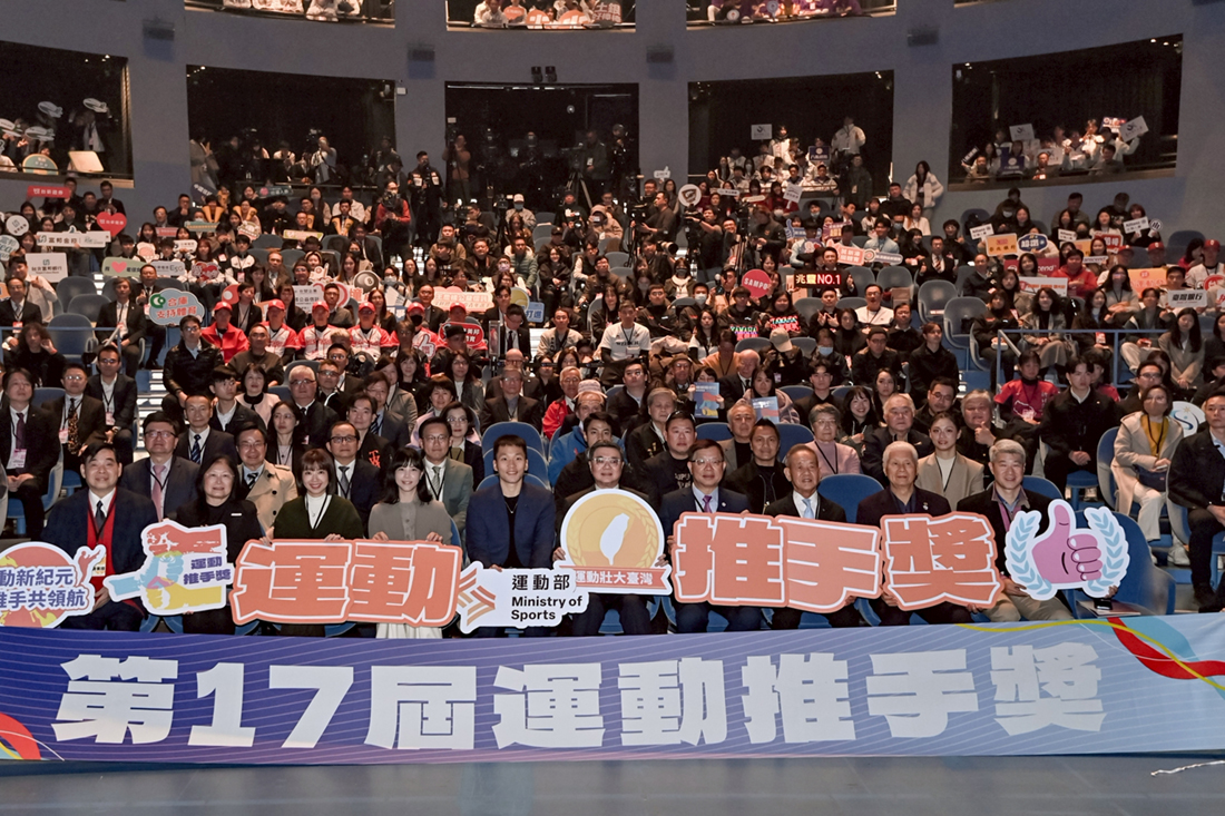 Premier Cho Jung-tai (front row, fifth right) attends the 17th Sports Activist Awards, encouraging closer collaboration between the government and businesses in supporting local athletes.
